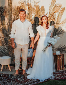Sand, Strand, Meer und Palmen so weit das Auge reicht... Wer würde nicht gerne auf Ibiza heiraten? Ivory in Kombination mit Sand und hohe Glaswindlichter sorgen für ein edles Feeling, aufgelockert wird mit olivgrünen Vasen. Goldene Kerzenständer in Palmoptik sorgen für die Strandstimmung und Raffia Tischsets für die Gemütlichkeit. Mit der Wolke über dem Tisch fühlt es sich an, wie an einem schattigen Plätzchen unter einer Palme am Strand.